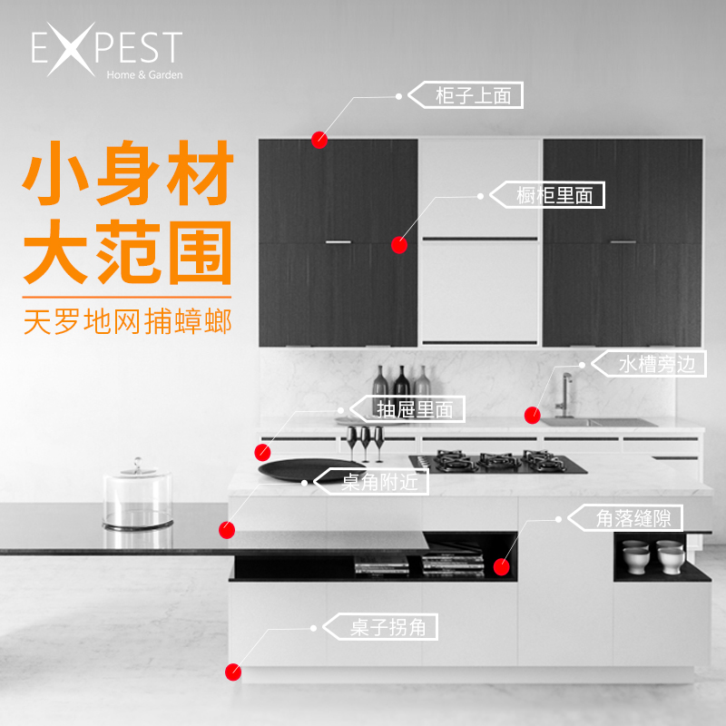 EXPEST環境科技通過不斷研發來追求提高產品效率,提升產品質量。3 in ONE 蟑螂/爬蟲陷阱是專業蟲害控制公司最常用的檢測小工具,也是日本、韓國最暢銷的蟑螂捕捉粘板。同時,配合日本最新天然引誘材料配方來增加對蟑螂的引誘與捕捉效果。